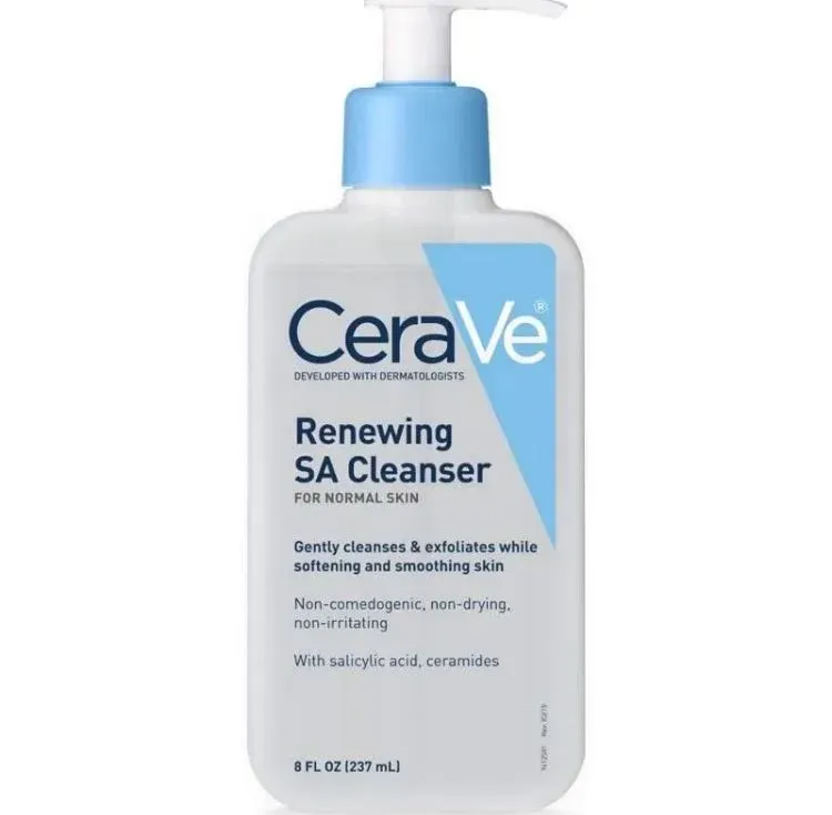 CeraVe Renewing SA Cleanser exfolia y desintoxica para eliminar la suciedad y el aceite mientras suaviza y suaviza la piel. A diferencia de algunos limpiadores exfoliantes, el limpiador CeraVe Renewing SA no contiene granos ni granos duros y es suave para la piel.
